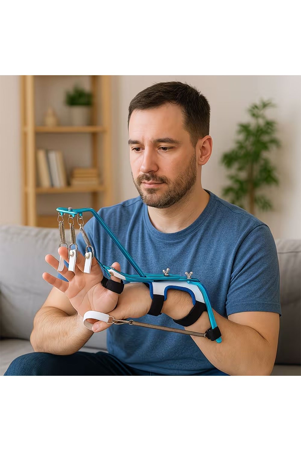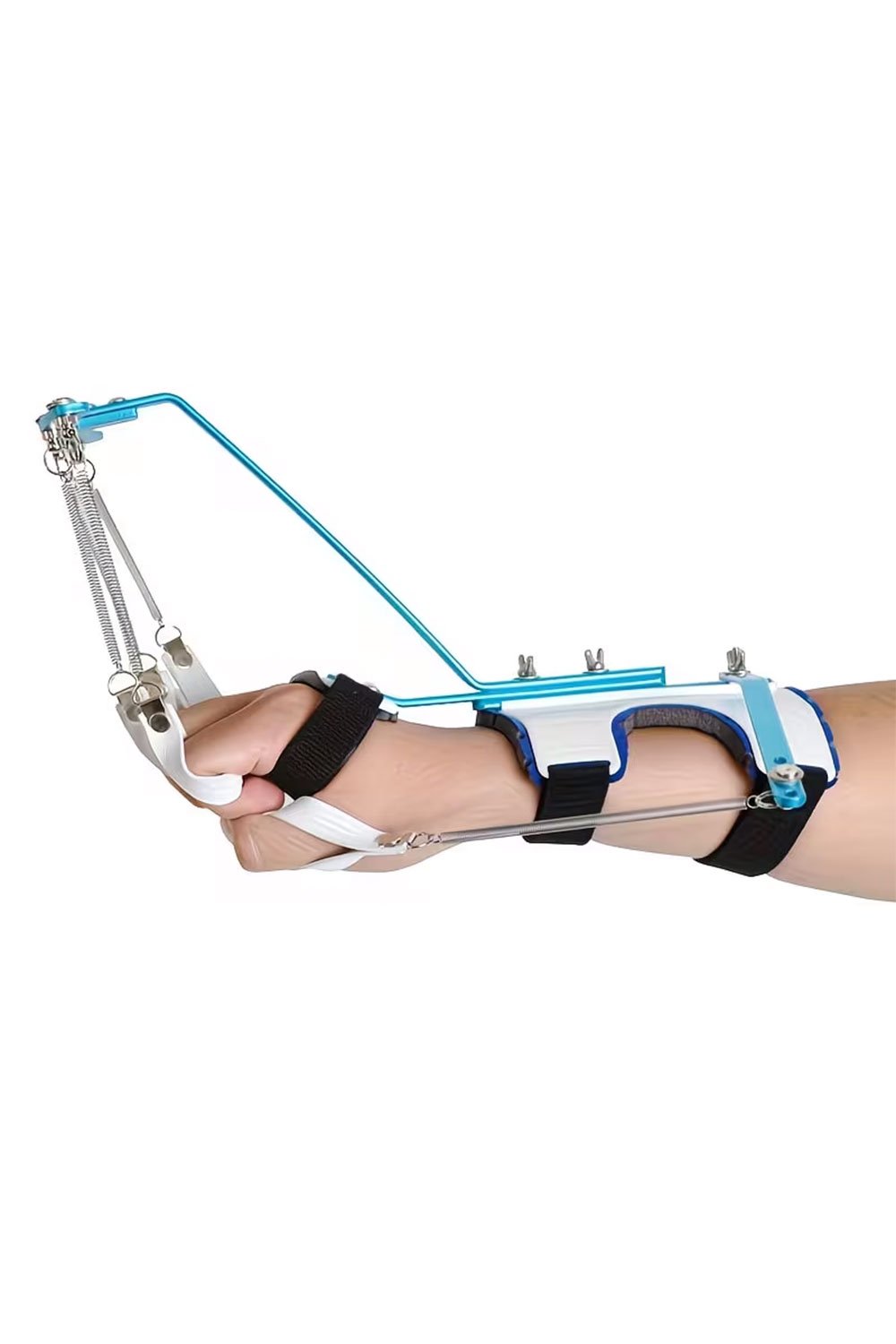 جبيره يد كوك اب cock up ديناميكية لتقوية أصابع من الألومنيوم – ماسك يد زنبركي لتمارين الأصابع والمعصم، تصميم حديدي متين بلمسات زرقاء، مثالي لبناء العضلات وإعادة التأهيل،
