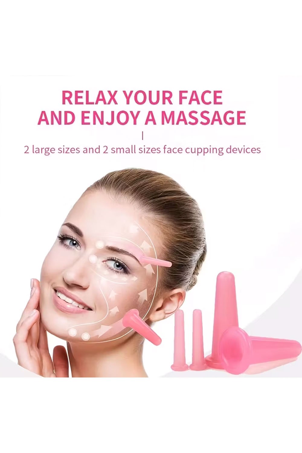 مجموعة كاسات تدليك الوجه المصنوعة من السيليكون (4 قطع) – تتضمن2 كب صغير 2 كب كبير للعناية بالبشرة والاسترخاء، مجموعة تدليك سهلة الاستخدام، مثالية للعناية اليومية بالبشرة