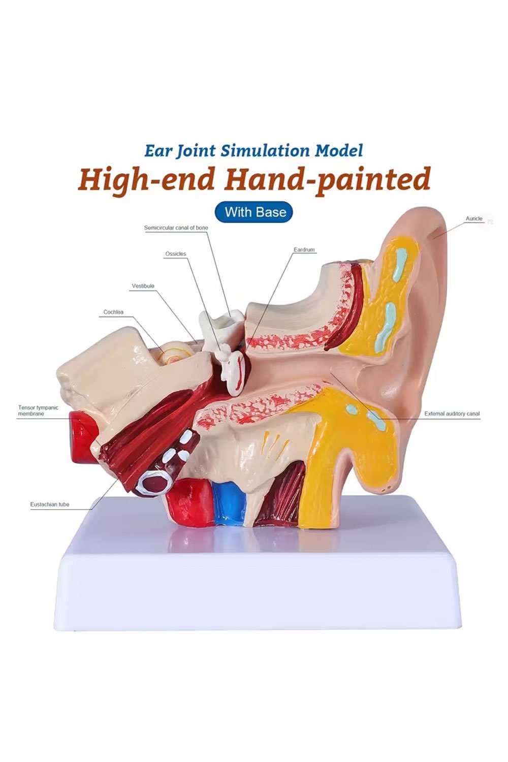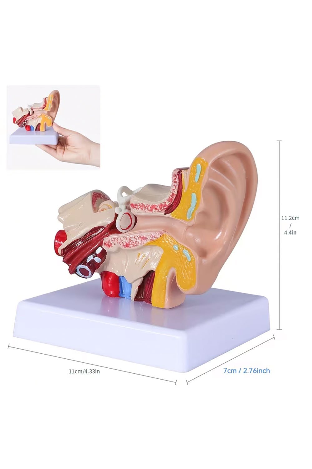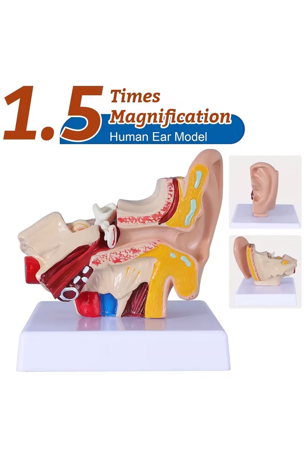 نموذج تشريحي للأذن البشرية بحجم 1.5 ضعف – نموذج محاكاة مفصل الأذن، نموذج احترافي للأذن الخارجية والوسطى والداخلية مصنوع من مادة PVC مع قاعدة للعرض الطبي