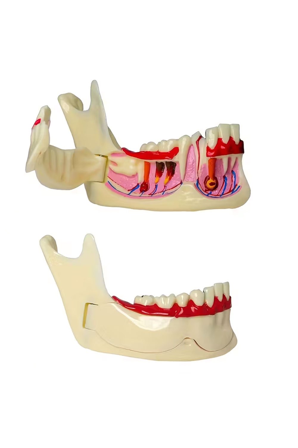 نموذج تشريحي للأسنان والفك السفلي مع تجاويف فموية وأكياس جذرية – أداة عرض أسنان بلاستيكية لأخصائيي طب الأسنان، وأخصائيي صحة الأسنان، والطلاب