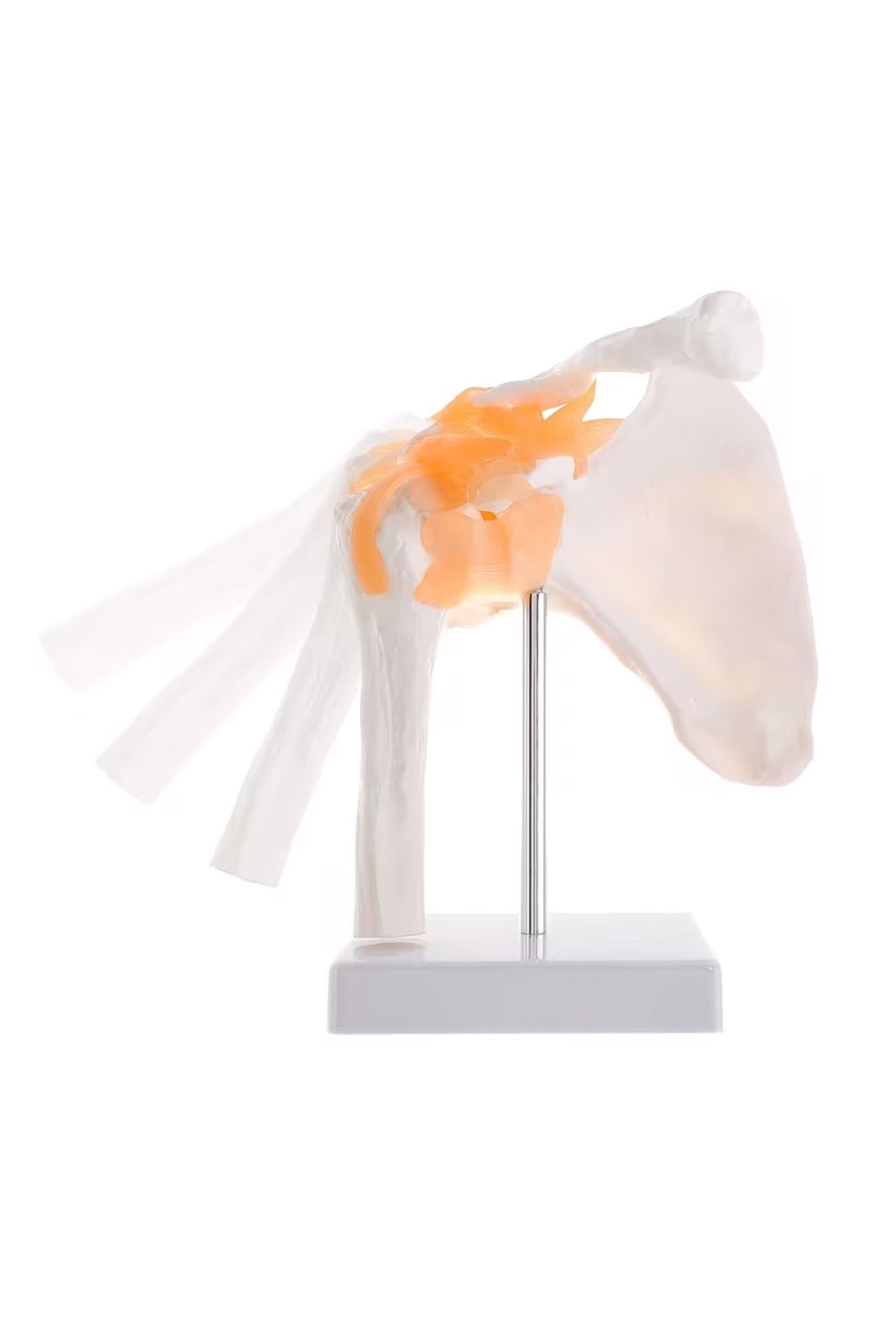 نموذج تشريحي للكتف بالحجم الطبيعي مع الأربطة – هيكل عظمي بشري وظيفي للدراسات الطبية، مصنوع من البلاستيك