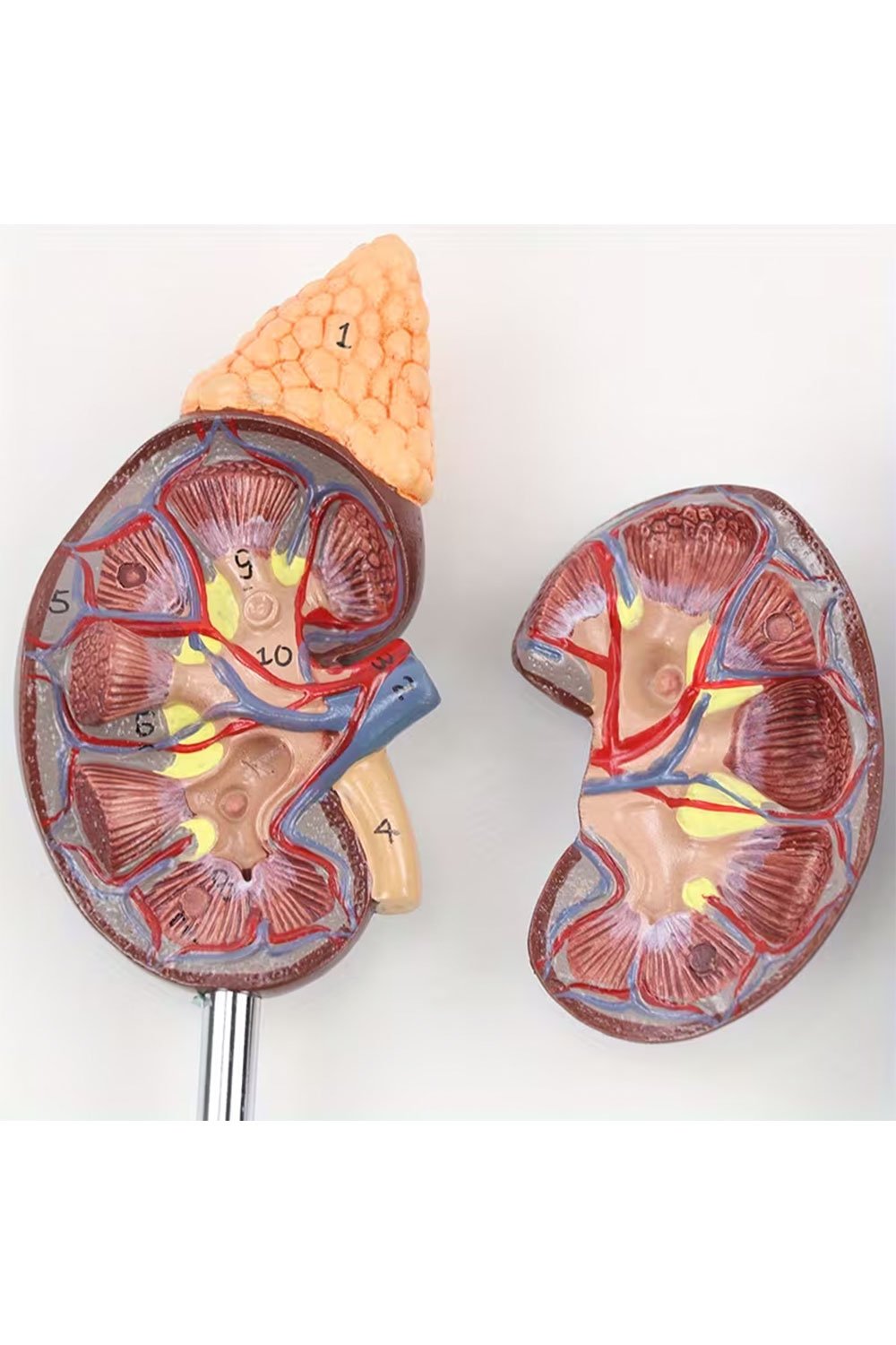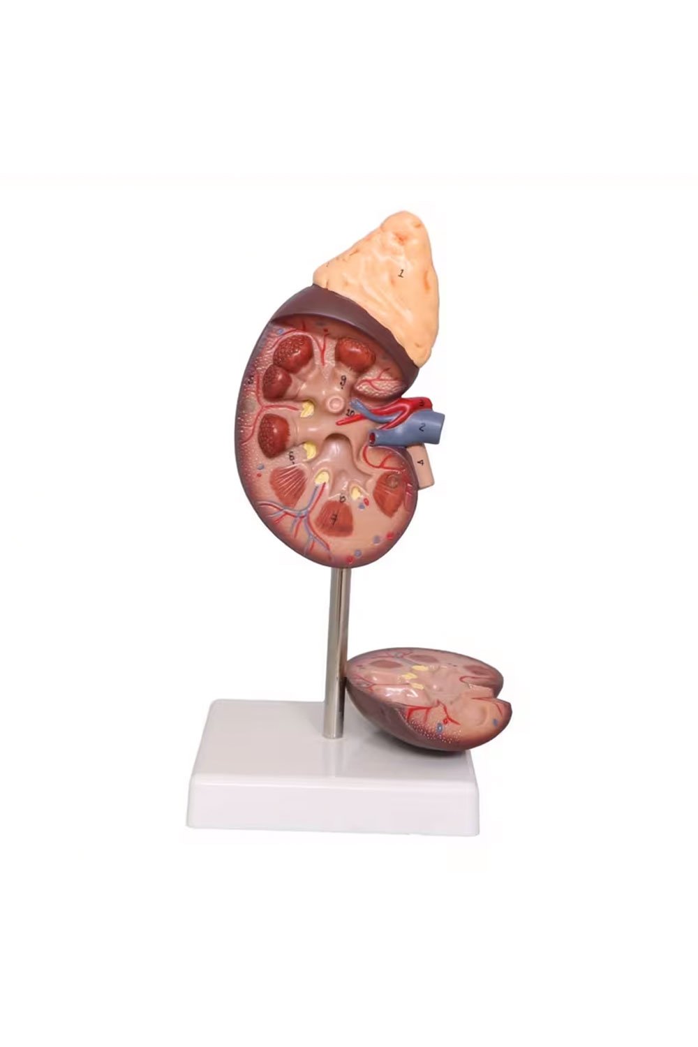 نموذج كلية بالحجم الطبيعي مع غدة كظرية، هيكل داخلي من جزأين، نسخة طبق الأصل من تشريح الكلية البشرية الطبيعية للأطباء